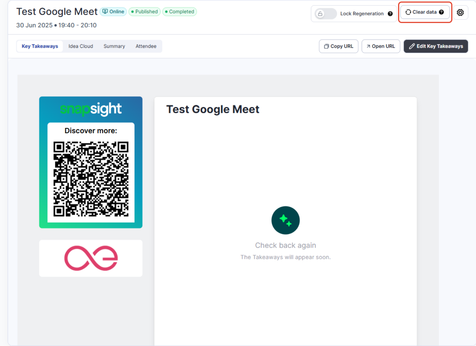 snapsight allows you to clear session data if needed. This feature is useful for resetting session information, but please remember that you are limited to performing this action up to five times per session.