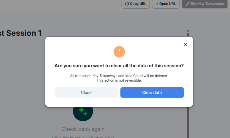 On the session details page, click on the Clear Data button. This will initiate the data-clearing process.