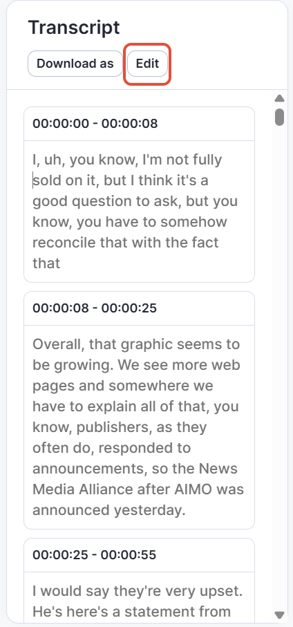 If you want to make changes to the session content such as Key Takeaways, Idea Cloud, or the Transcript, follow the steps below: