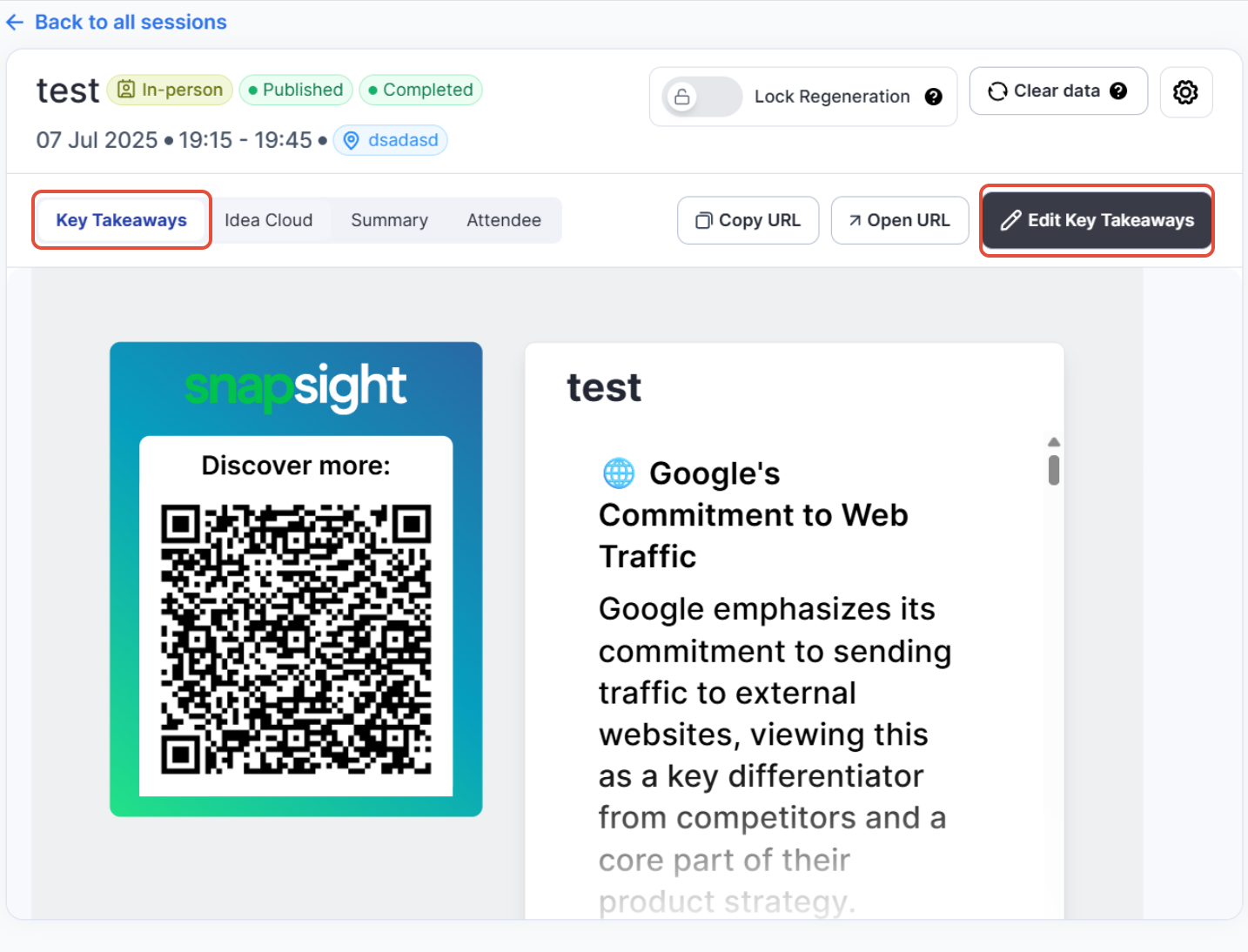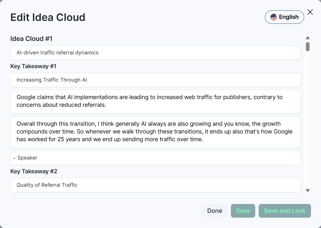 How to Edit Key Takeaways, Idea Cloud, and Transcripts for a Session