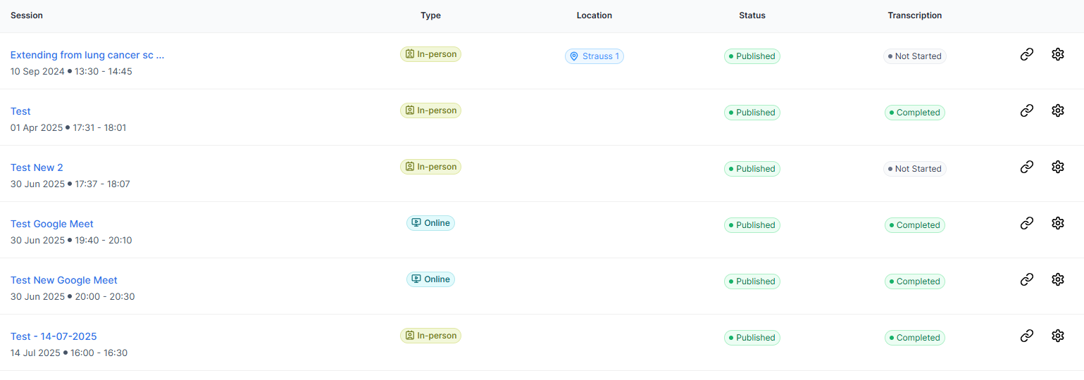 The imported sessions will now appear on the project page, and you can manage them as needed.