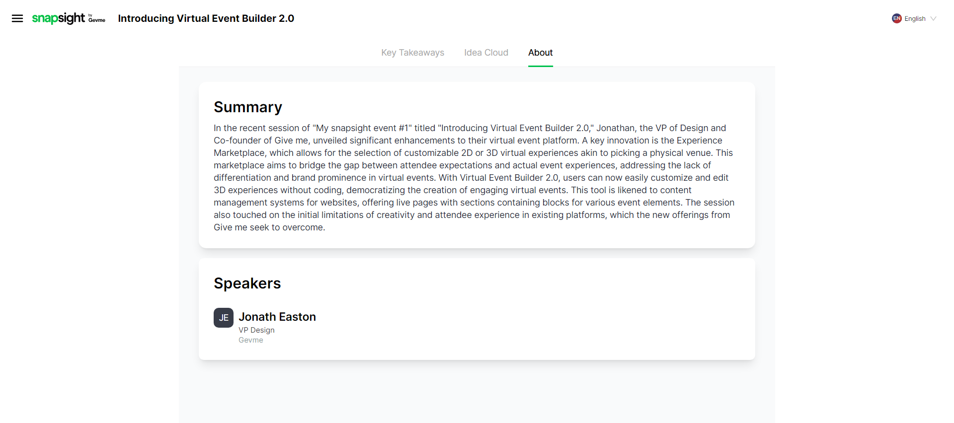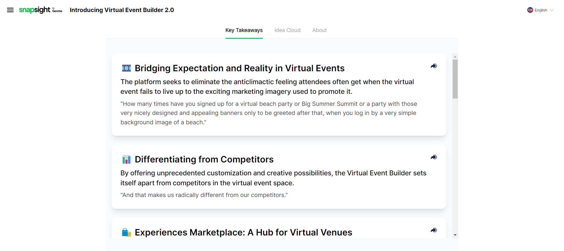 - Choose between Key Takeaways or Idea Cloud.