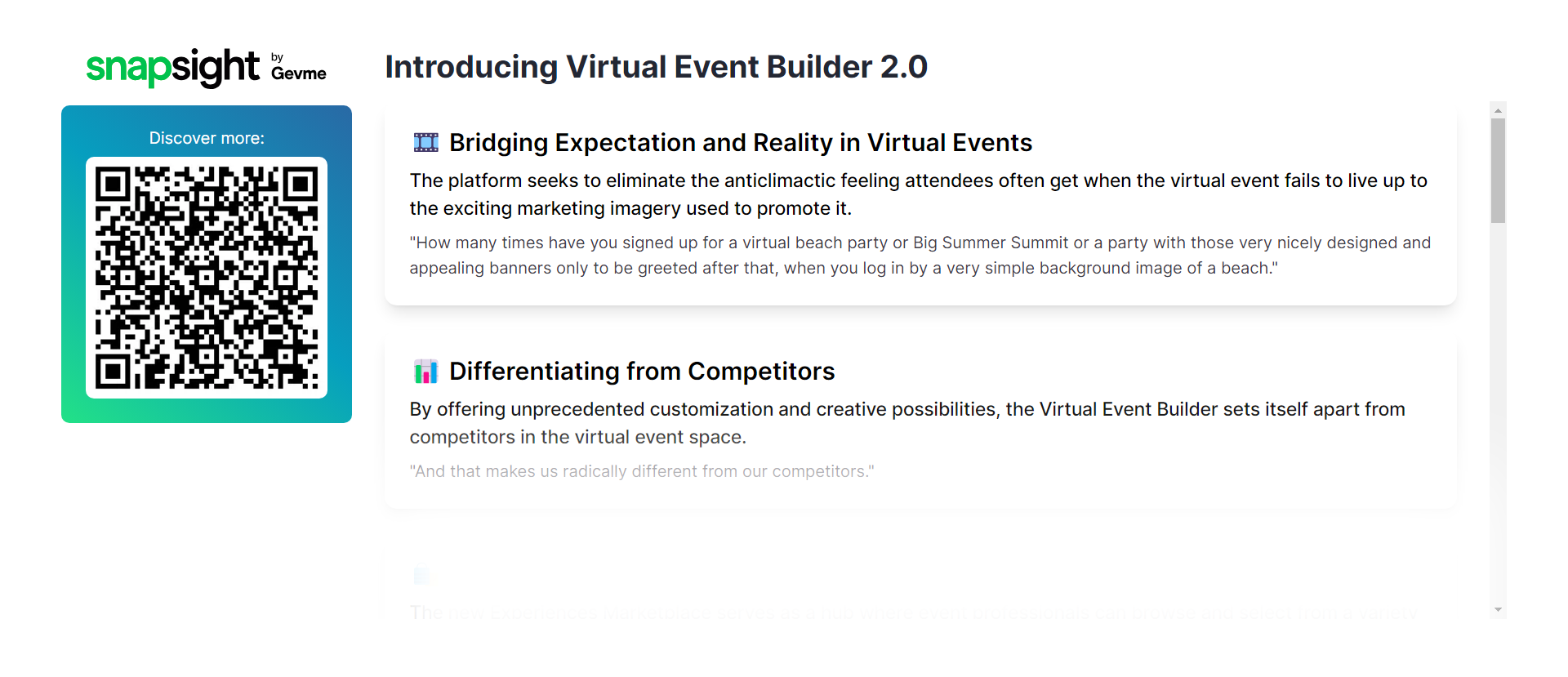 - Key Takeaways: Attendees scan the QR code to receive the key takeaways directly on their mobile devices.