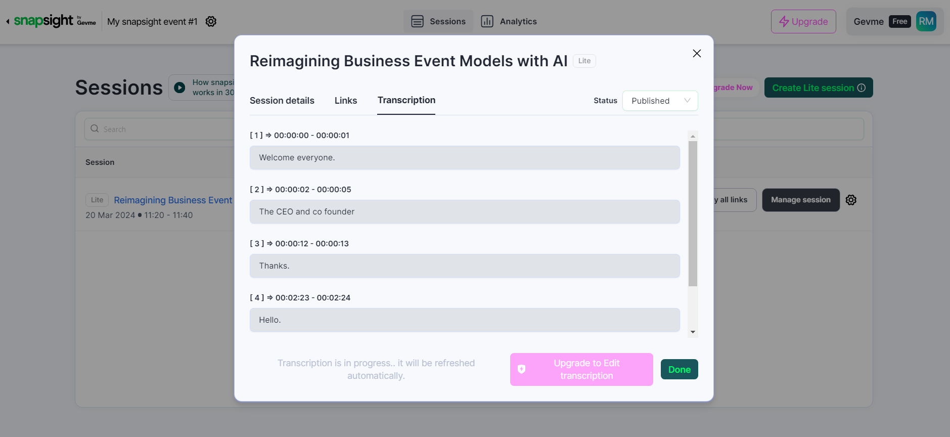 - Currently Snapsight doesn’t allow deleting the transcription.