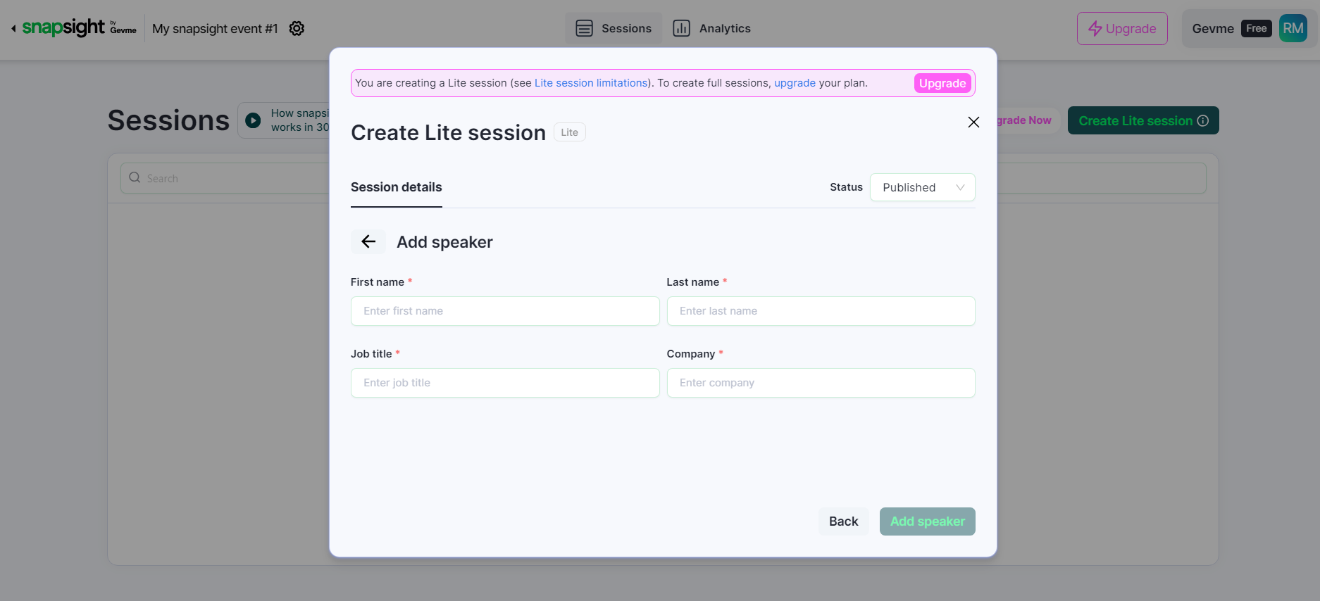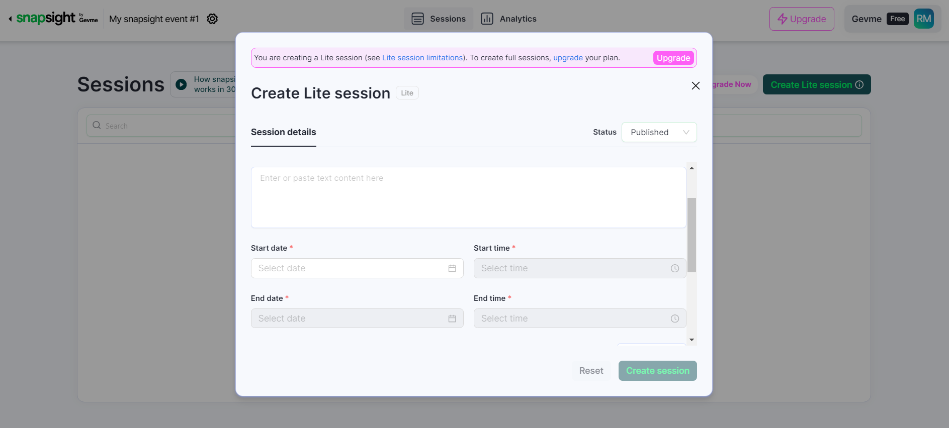 Follow these step-by-step instructions to set up a snapsight session for your event:
