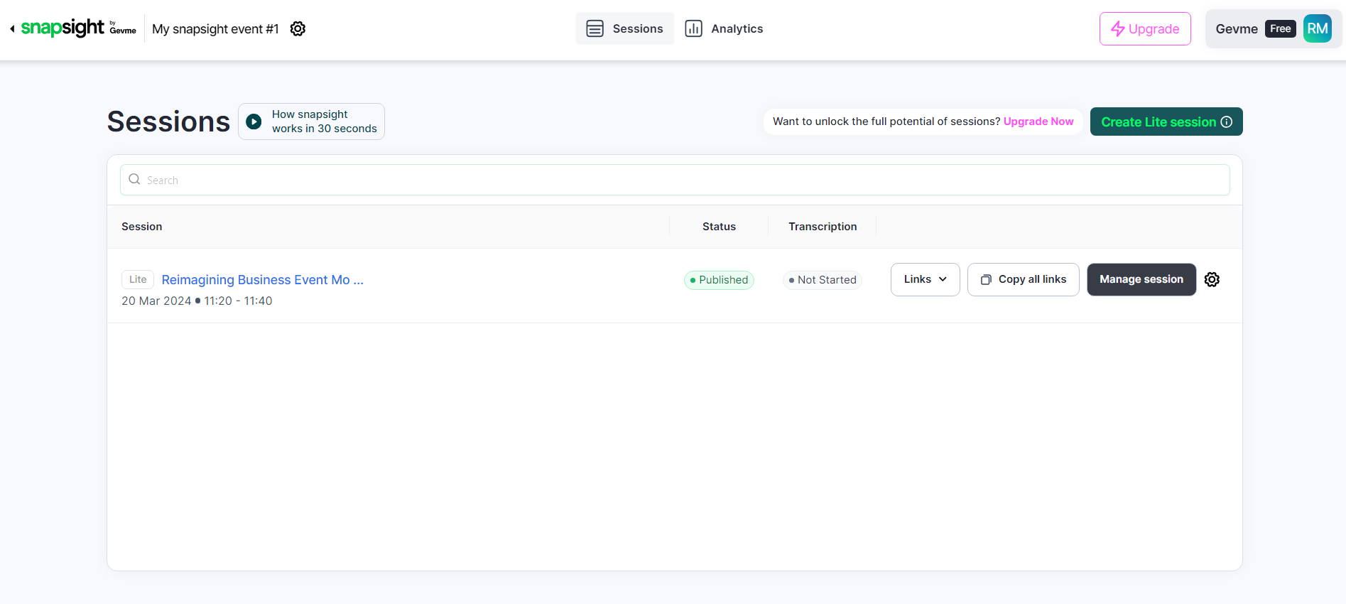 In the evolving landscape of events, seamlessly integrating live content can greatly improve the experience for both organizers and attendees. Snapsight Sessions serves as a valuable tool enabling event organizers, professionals, and marketers to incorporate live content from their events and utilize it in real-time for interactive features such as Snapsight Takeaways and snapsight Tasks. This guide will provide step-by-step instructions for creating snapsight sessions to enhance your event engagement.