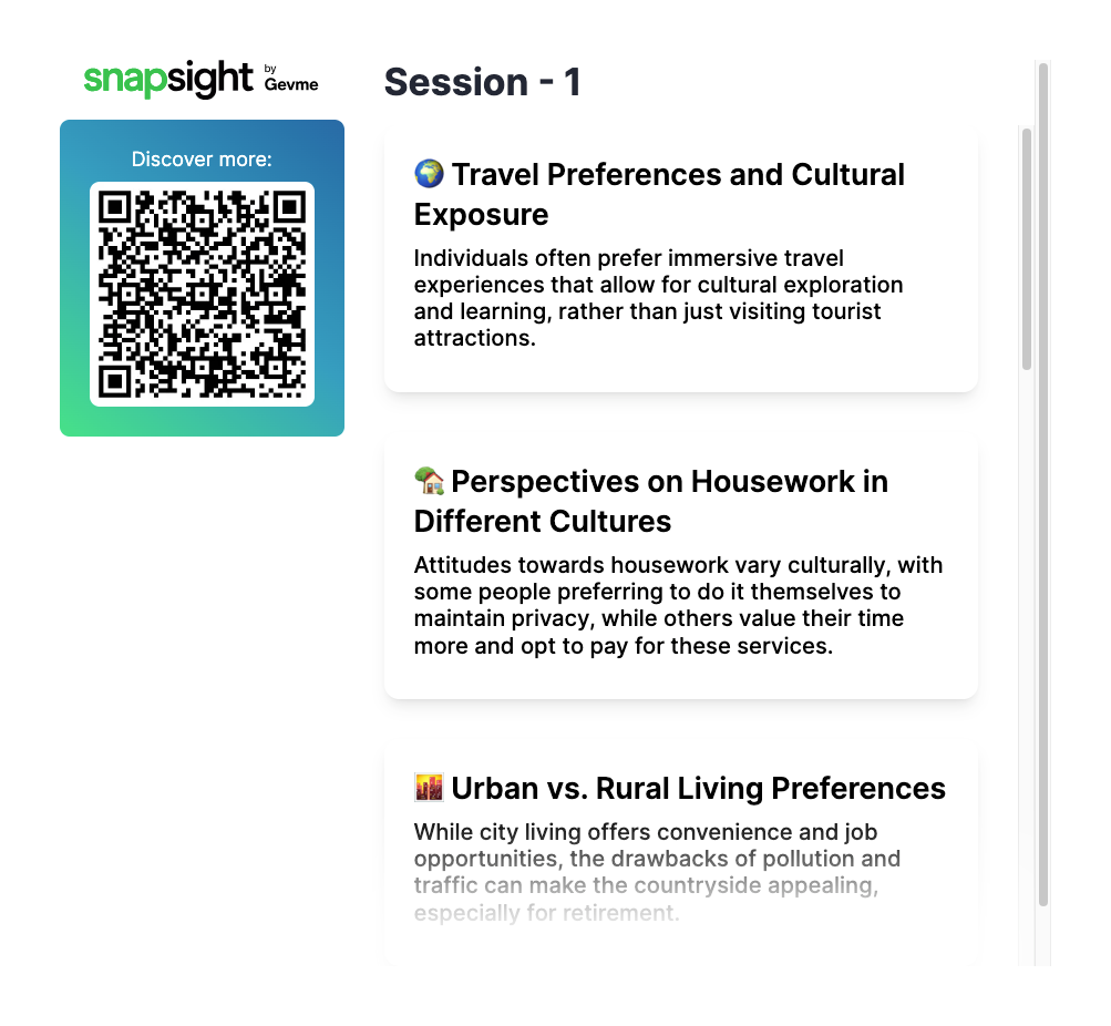 By making these content digests instantly accessible, Snapsight empowers attendees to absorb and retain key information from sessions they couldn't experience in person. Let's dive deeper into each of these game-changing features.