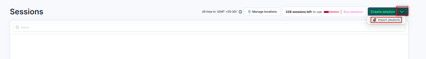 Within your project, click on the downward arrow next to the Create Session button and select Import Sessions.